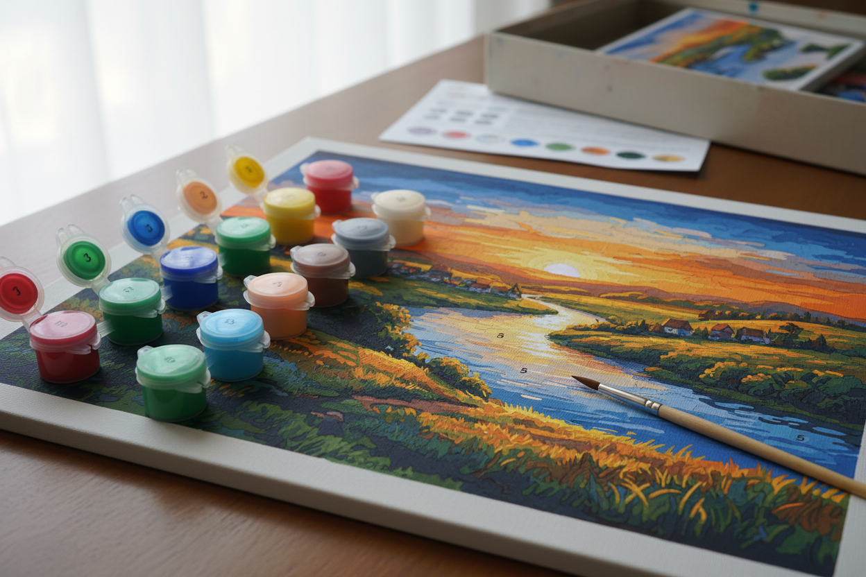 Get everything you need: pre-drawn canvas, paints, brushes, and step-by-step instructions.